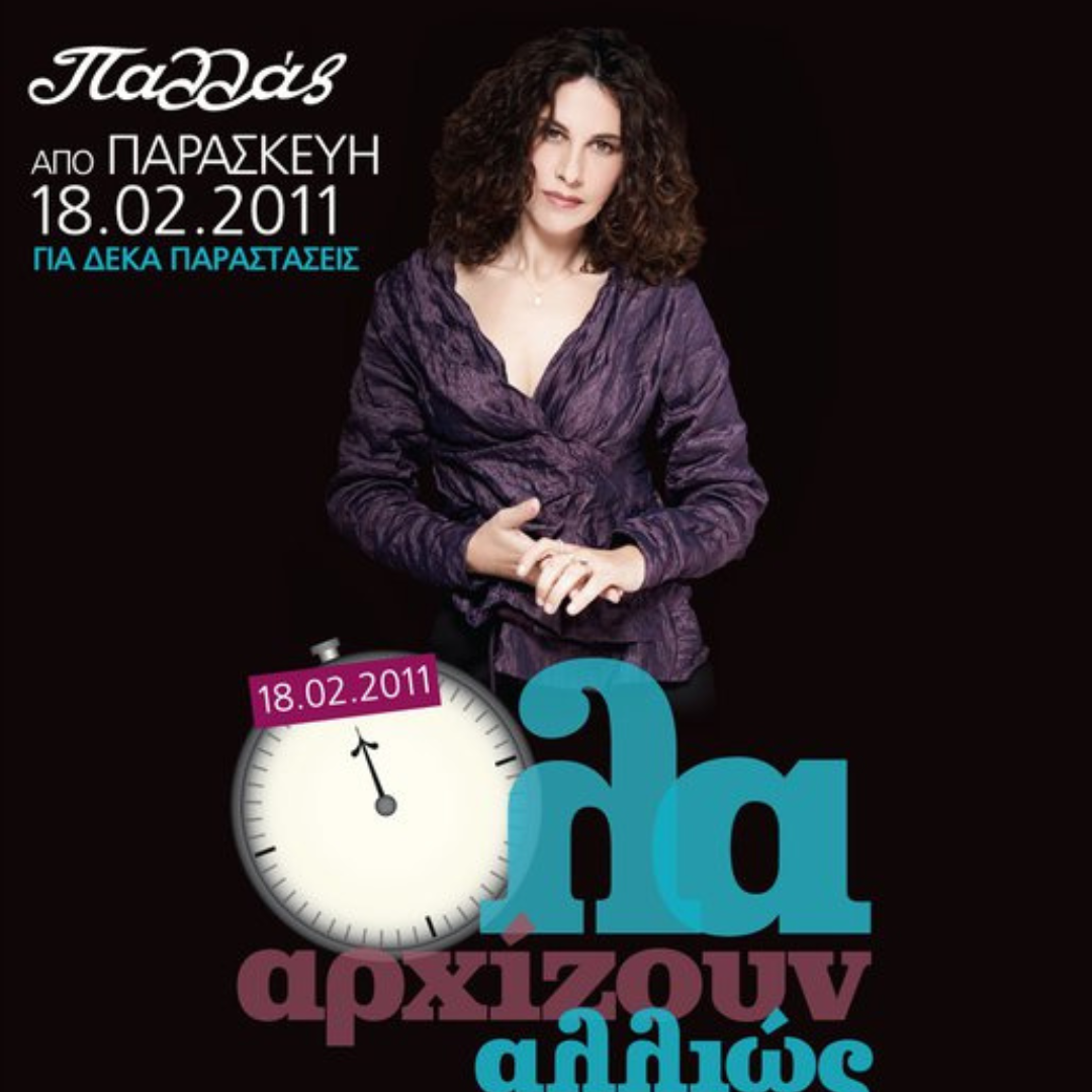 “Everything begins otherwise” for Eleftheria Arvanitaki in 2011. She presents a series of so-called shows at Pallas Theatre in Athens. The direction is by Yiannis Kakleas and the sets by Manolis Pantelidakis. In summer, she tours all over Greece with a quartet.